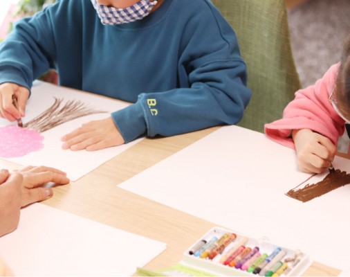 なちゅりあは、まち中の隠れ家みたいな安心できる場所です。ドアを開けて一歩入れば、ウェルカムボードとやさしい緑がお迎えします。